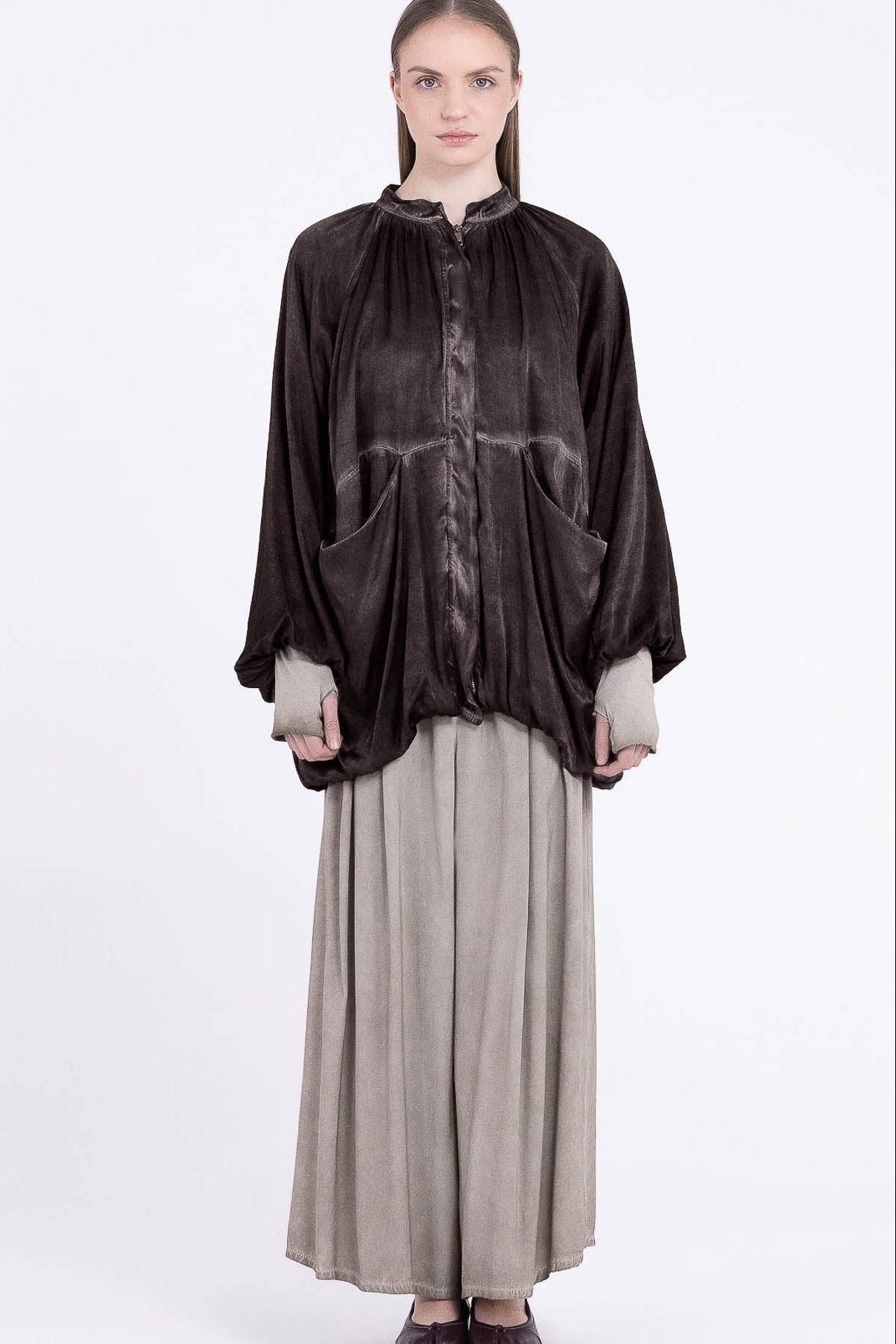 In the autumn/winter collection, weight and texture take the lead. Layers build slowly - linen against leather, denim softened by silk- held together by muted tones and thoughtful construction. This is clothing for stillness and depth, designed with intention and worn as a form of expression through colder months.