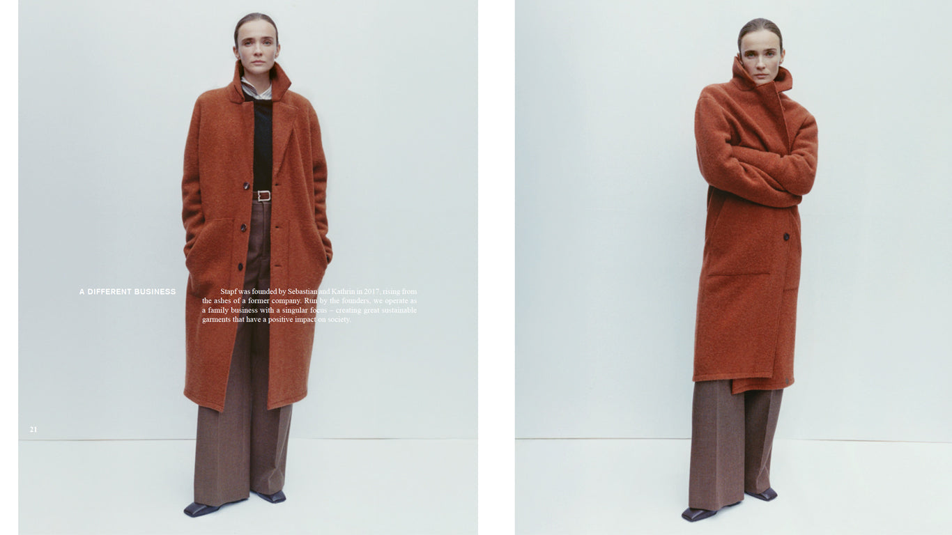 When environmental enthusiasts Kathrin and Sebastian took over the brand, they set out to honour its rich heritage while steering it toward a greener future. By sourcing the finest organic and mulesing-free wool from family-run suppliers and maintaining production within Europe, Stapf ensures that every piece carries a legacy of quality, responsibility, and care.