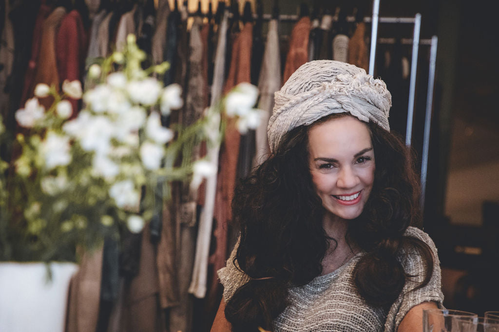 A mix of linen, silk, and leather that move with her through the day.